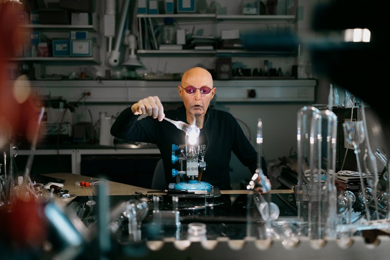 Som videnskabelig glasblæser har han nemlig ikke bare fulgt forskernes specifikationer, når han skabte glasrør, kolber, beholdere osv. til dem – han har i høj grad selv været med til at udvikle dem.